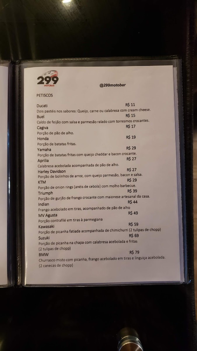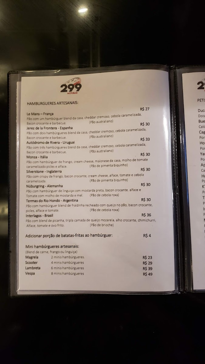 Introducing 299 Moto Bar, a delightful hamburger restaurant nestled in the heart of Jacarepaguá, Rio de Janeiro. This culinary gem specializes in artisanal mini burgers, with the "Magrela" and "Scooter" among the crowd favorites, each offering a burst of flavor with creamy cheddar, caramelized onions, crispy bacon, and a smoky barbecue sauce. Customers rave about the "Le Mans" and "Jerez de La Frontera," which boast a perfect blend of house-made patties nestled in soft Australian buns.